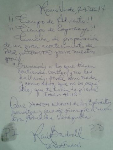 “¡Tiempo de Adviento! ¡Tiempo de Esperanza! También de preparación de un GRAN ACONTECIMIENTO DE PAZ Y LIBERTAD”, expresó.